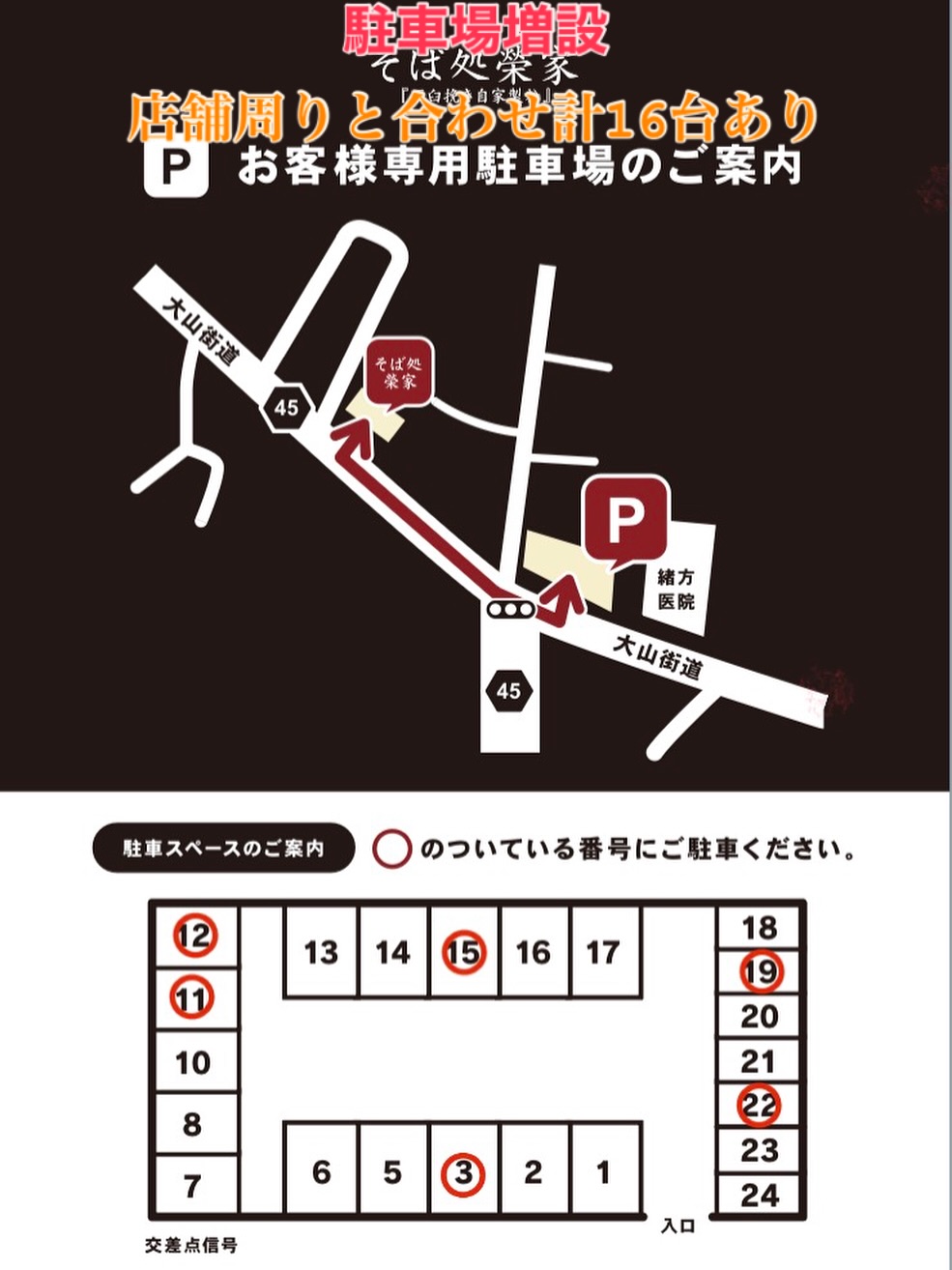 茅ヶ崎蕎麦処榮家からのお知らせ 4月より駐車場が更に 【2台増設】 致します🚗ー! 店舗周りの駐車場と合わせて 計16台駐車可能となっております! #茅ヶ崎蕎麦処榮家 #石焼き鴨せいろ #駐車場増設